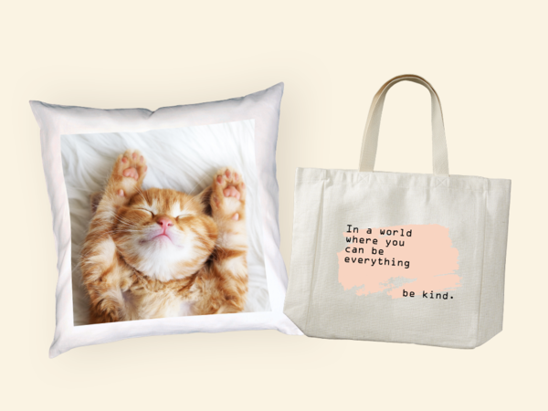 Gestalten Sie einzigartige Textilien wie den Shopper oder ein Kissen mit Ihrem Wunschmotiv
