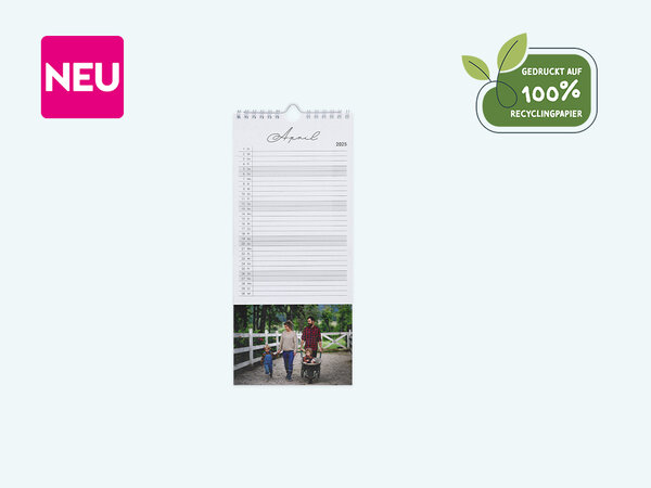 Unser Digitaldruckkalender Matt präsentiert Ihre Bilder in hoher Qualität und mit zeitloser Eleganz, dank seiner reflexionsarmen Oberfläche. Er ist unempfindlich gegen Fingerabdrücke und verfügt über eine beschreibbare Oberfläche, die Ihnen ausreichend Platz für Notizen bietet.