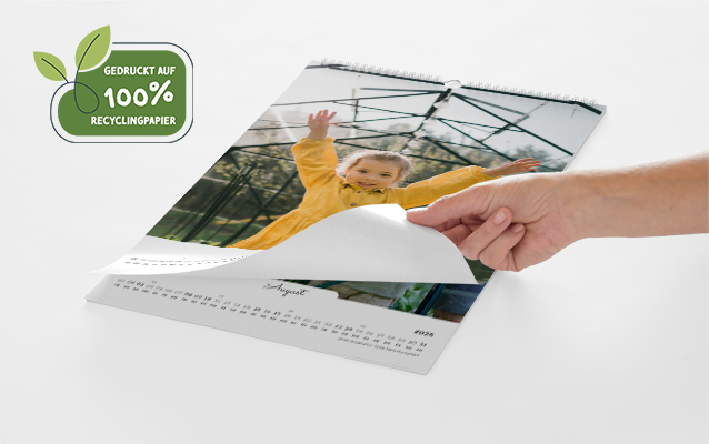 Unsere Kalender sind nicht nur eine stilvolle Möglichkeit, Erinnerungen festzuhalten, sondern auch ein klares Bekenntnis zur Umwelt. Mit vier verschiedenen Varianten sind sie die ideale Wahl für alle, die sich für Nachhaltigkeit einsetzen möchten. Der hochwertige Druck erfolgt auf Recyclingpapier, welches sich durch geringe Umweltbelastung und exzellente Druckqualität auszeichnet.